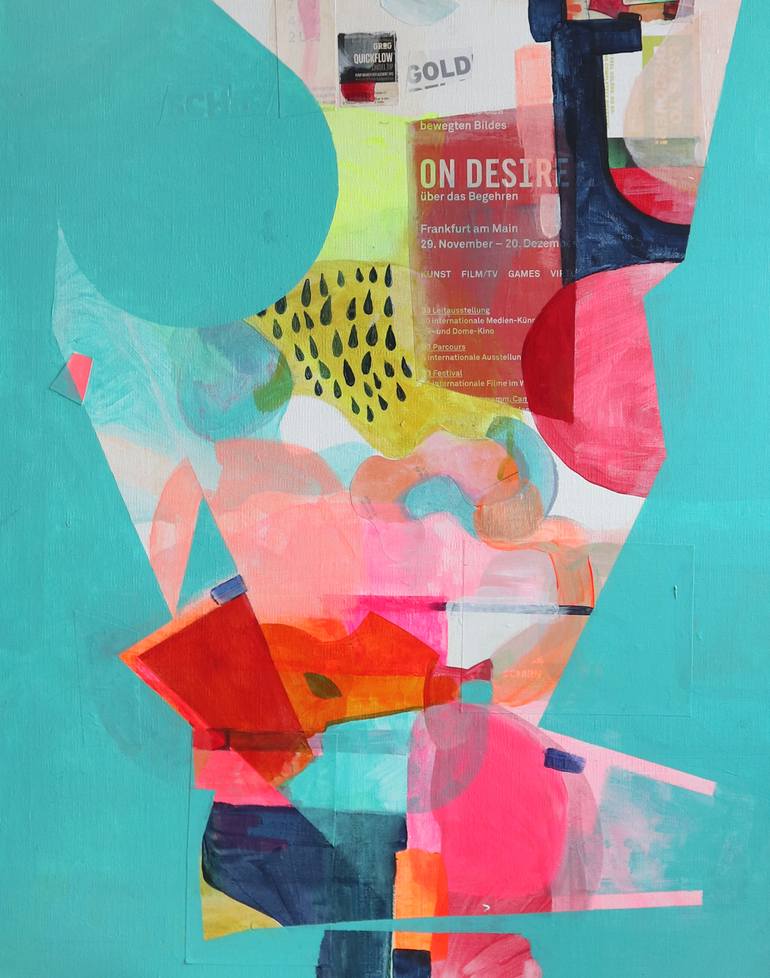 Vibrant, summery and fun. Pinks, oranges, cool yellows, framed by some bold and thick layers of mint.
