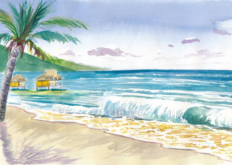 Tropical Beach Vibes in Bora Bora French Polynesia - Watercolor on Paper