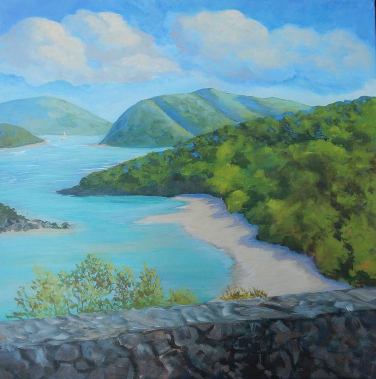 One of our favorite vacation spots is the Virgin Islands (USVI). This particular painting was inspired by some of the photos taken on our latest trip to St. John, a couple years ago. I have painted Maho Bay and Cinnamon Bay, Frank Bay, etc., but never Trunk Bay. This is a one-of-a-kind acrylic pa...