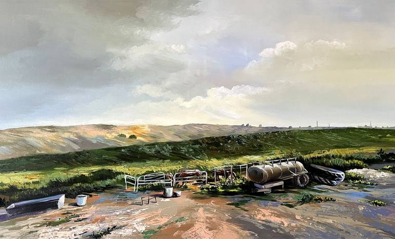 In this acrylic piece, I weave expressionism with touches of impressionism and realism to evoke the rustic serenity of pastoral life. My brushstrokes capture the golden warmth of sunlight draping over verdant rolling hills, while the aged farm equipment stands as a tribute to the enduring labor and ...