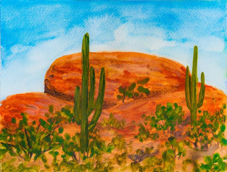 Original watercolor painting "Tucson, Arizona" Painting size: 6"x 8" (15x20cm). Hand signed on the front and back. Frame is not included.