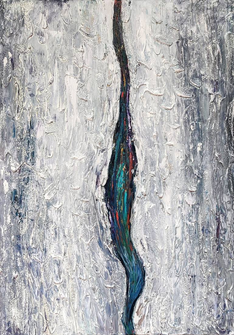Experience the captivating allure of our magnificent Acryl painting "Tunnel. River". This extraordinary piece is specifically crafted for art collectors who appreciate the beauty of abstract expression in its most elevated form.Behold a striking UV+ dark blue river, flawlessly running inside intrica...