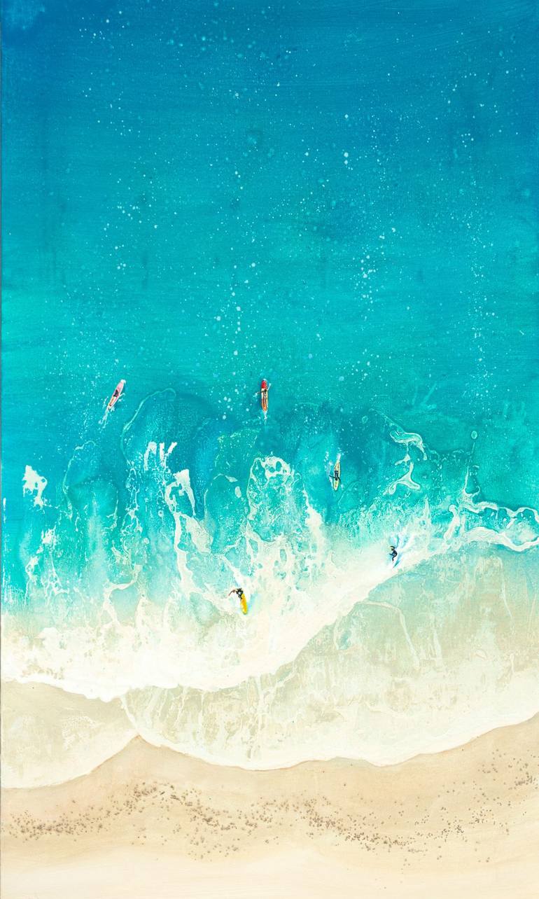Acrylic and oil on Canvas Varnished on top for UV protection One of a kind artwork Size: 54 x 90 x 2.5cm (actual image size) The painting is framed Ready to hang Signed on the back Style: Expressive and gestural Subject: Landscapes, sea and sky Inspiration - My dream places to visit Turquoise Drea...