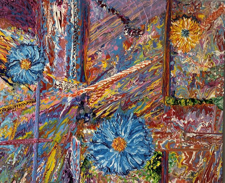 This oil painting took several years to complete; the result is a highly textured surface (see detailed photos). Inspiration comes as it often does from visits to garden centers, especially those that stock the more exotic plants with their complicated forms and ravishing colors. This painting also ...