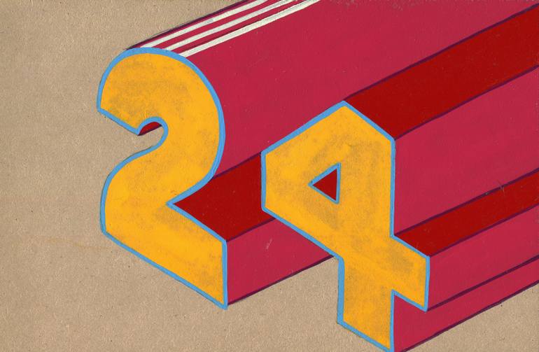 Hand painted sign on a scrap piece of MDF Painted '24' inspired by the "When I'm sixty four" sequence in the movie "Yellow Submarine" (a new favorite of my daughter).