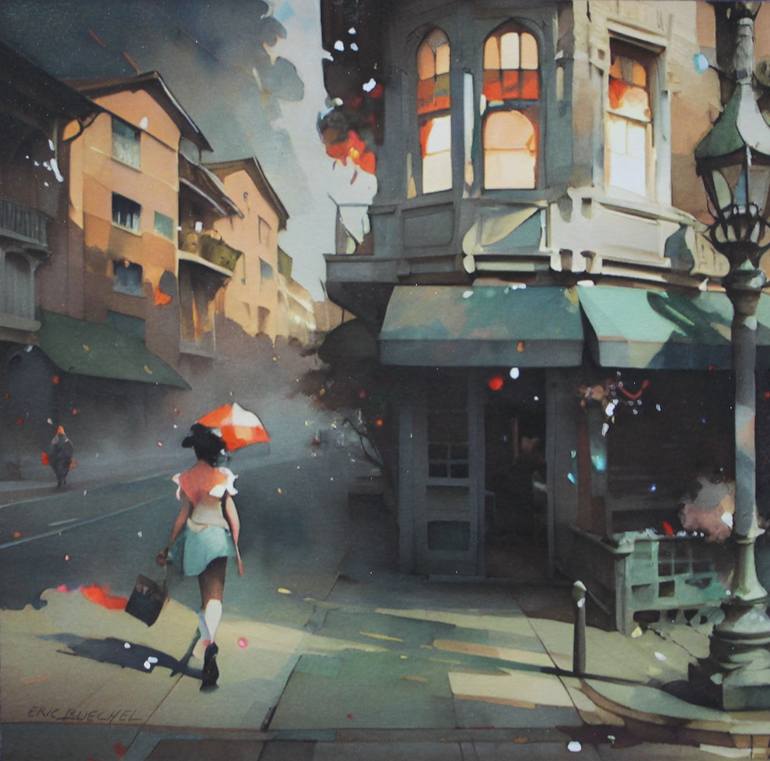 Twilight Passage By Eric Buechel In the old city where shadows blend, The sun dips low, a golden friend. Twilight whispers in hues of gray, As the day sighs softly, fading away. A gentle rain begins to fall, Each drop a note in the evening's call. She walks with grace on cobblestone, In th...