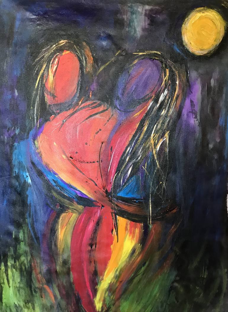 I created this in Palm Beach Florida after jogging along the ocean in the moonlight With all the mystery in the small beaches and how close you are to the water. I created several pieces on unstretched canvas as I knew I was coming back to Los Angeles this happened to be one of them I would consider...