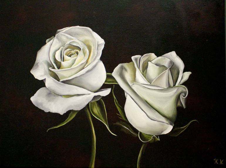 Two White Roses-Oil on Canvas, inspired by the beauty of white roses