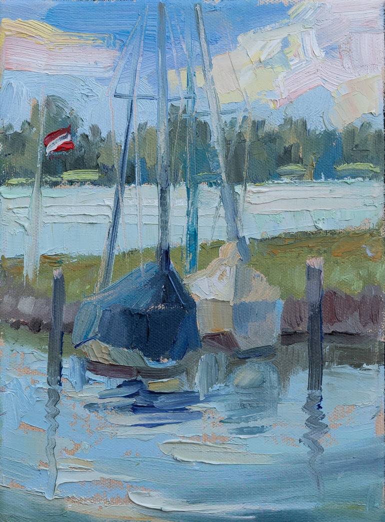 In my work with oil paints, I was guided by impressionism to capture the fleeting moods of water. Two majestic yachts stand still, their reflections dancing on the surface of the water, conveying a deep sense of calm. Every brush stroke is made with passion and invites the viewer to feel the freedom...