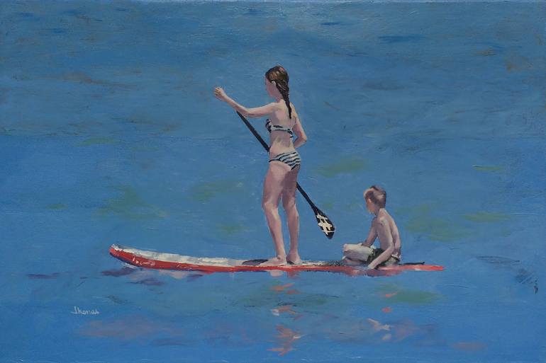 Oil on Soft (Yarn, Cotton, Fabric). Oil painting: Two brothers at sea. Every moment is precious. ORIGINAL ART SIGNED, CERTIFICATE OF AUTHENTICITY INCLUDED Artwork protected by PVC tube.