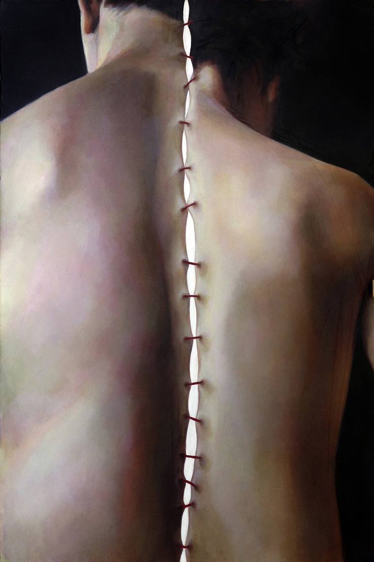 Oil on canvas. The relations of the body and the gaps as two halves of the man and woman body.