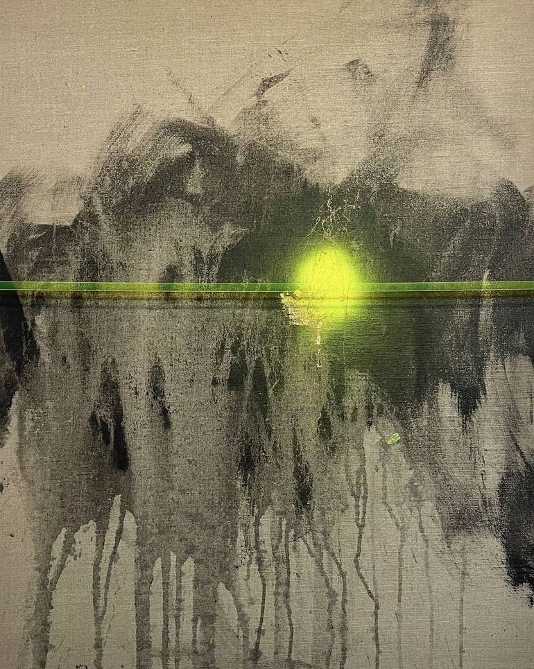 "Ulterior" is a contemporary pictorial series with striking conceptual gesturality. Through a monochromatic palette composed of whites, blacks, and extremely textured raw tones, the artist creates an atmosphere of subtlety and strength. At the heart of the work lies fluorescent spray paint, a irrev...