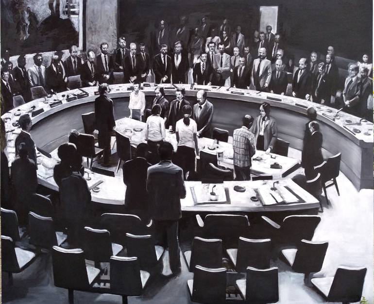 The moment in national history,phainted by a blac-white photo dating in 1980.