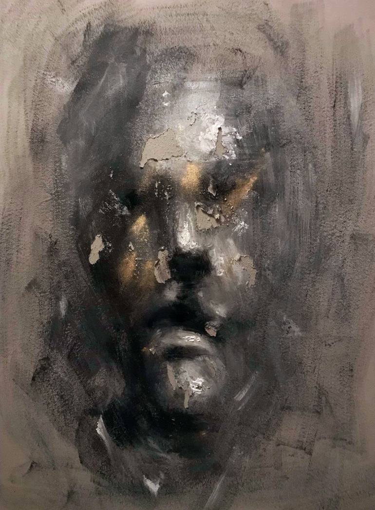 There is some stories behind any face. This portrait tells us about unbearability of life. Acrilyc on paper, 2019 september N.V