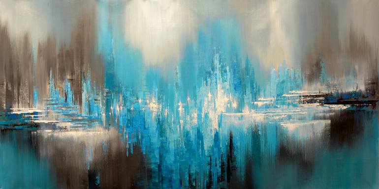 This is an original abstract landscape painting. Due to the large size of this canvas, it will be shipped rolled in a tube. Size: 27" x 59" with 2.5" inches around the canvas for mounting ( 32" x 64" ). Sides of the canvas are painted. A protective coat of satin varnish is applied.
