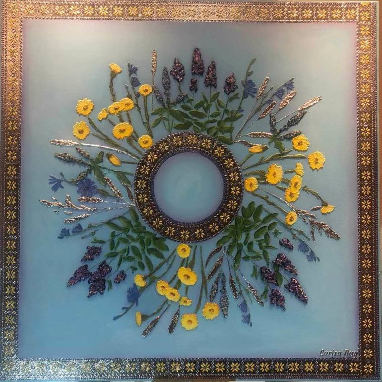 Ukrainian Wreath 100×100 cm Acrylic, gold leaf, author's technique 2023 Description Before you is not merely a decorative composition. This is a contemporary interpretation of the Ukrainian wreath — one of the deepest symbols of unity, eternal life, and the cyclic nature of existence. The wreath i...