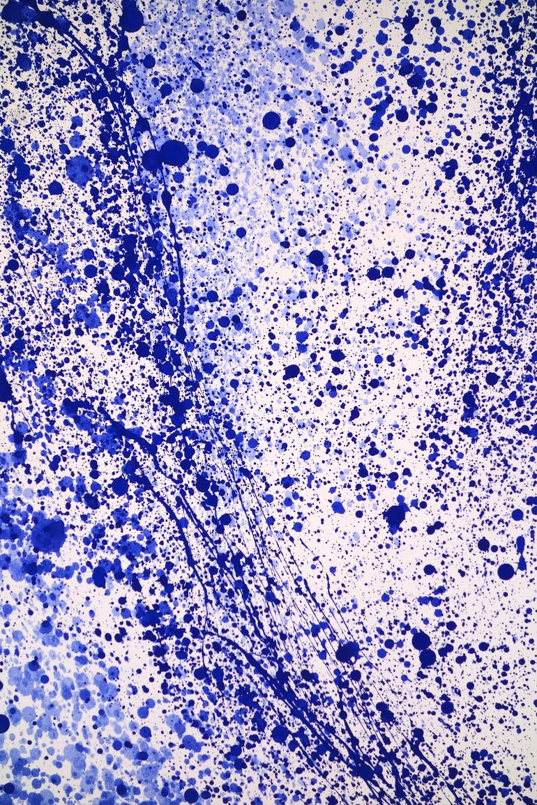 Fascinated by the ultramarine color, especially as it was made by Yves Klein with a newly developed medium to make the color grains shine through the medium, I have been dotting with different ratios of medium/ color grains (relatively more medium gives a brighter ultramarine). The result is an inte...
