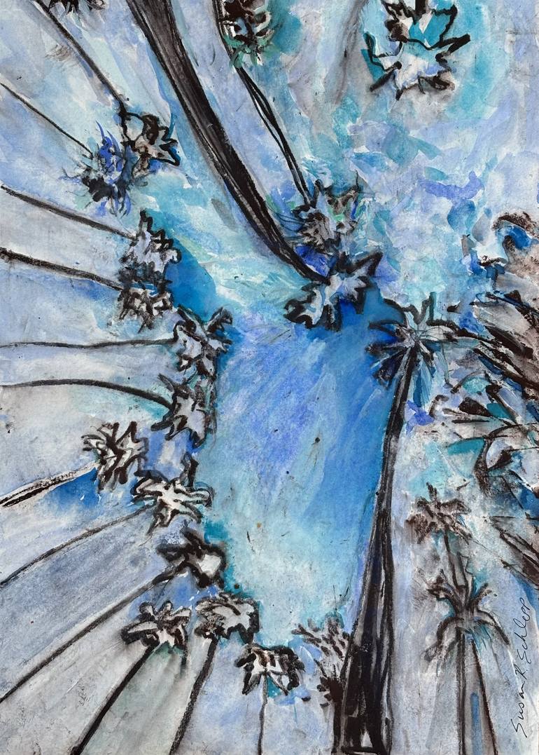 I was inspired by a virtual ceiling of palm trees towering above me while on a solo artist's retreat in San Diego, CA. "Under The Fronds" will brighten and enliven any space. My art has heart with 10% of sales benefiting The Nature Conservancy because our natural world deserves protection. Thank you...