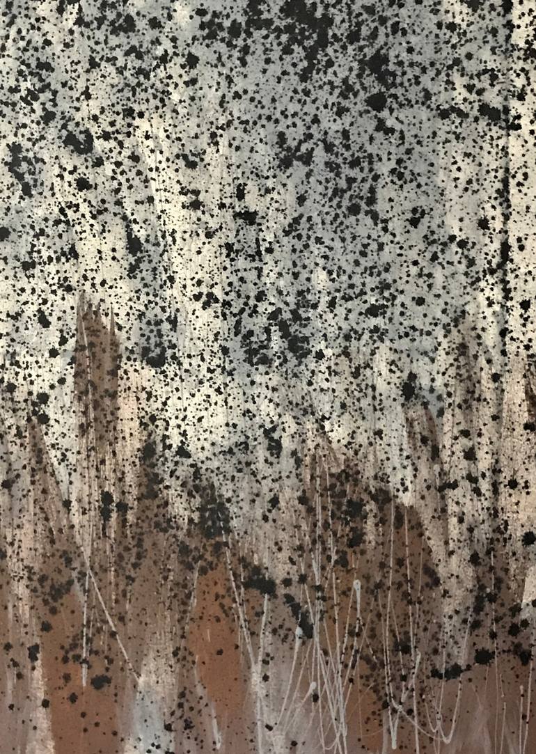 creation, nature, spirituality This painting is fairly minimal in paint with break-throughs of raw canvas running throughout. It has two coats of varnish for UV protection and is signed on the back. Its edges are painted grey.