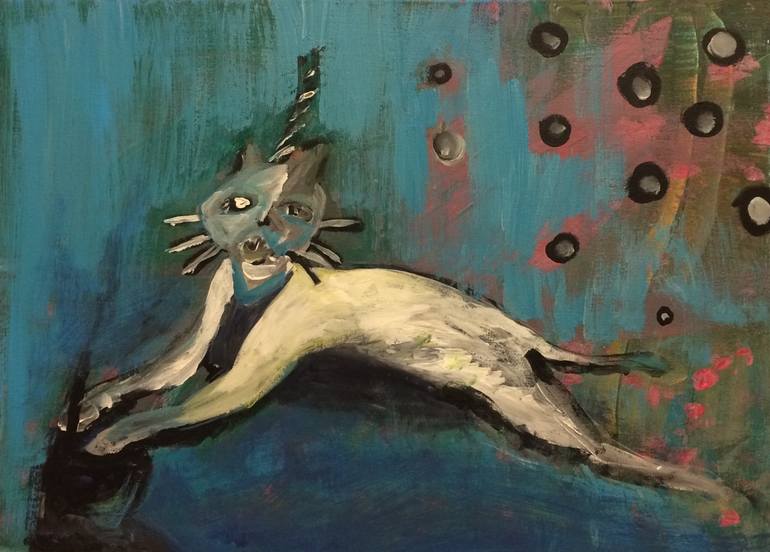 A car with a corn runs out of my mind. There is a shadow in front of the cat.
