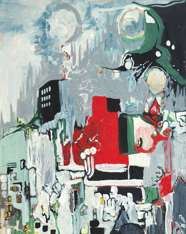 This abstract cityscape is made up of diametrically opposed features. We see both the hard and soft lines of a city, grayness opposed by vibrant red, and a dark, foreboding sense contrasted by the brightness existing within the city. Elements of light posts, windows, buildings, and signs illuminate ...