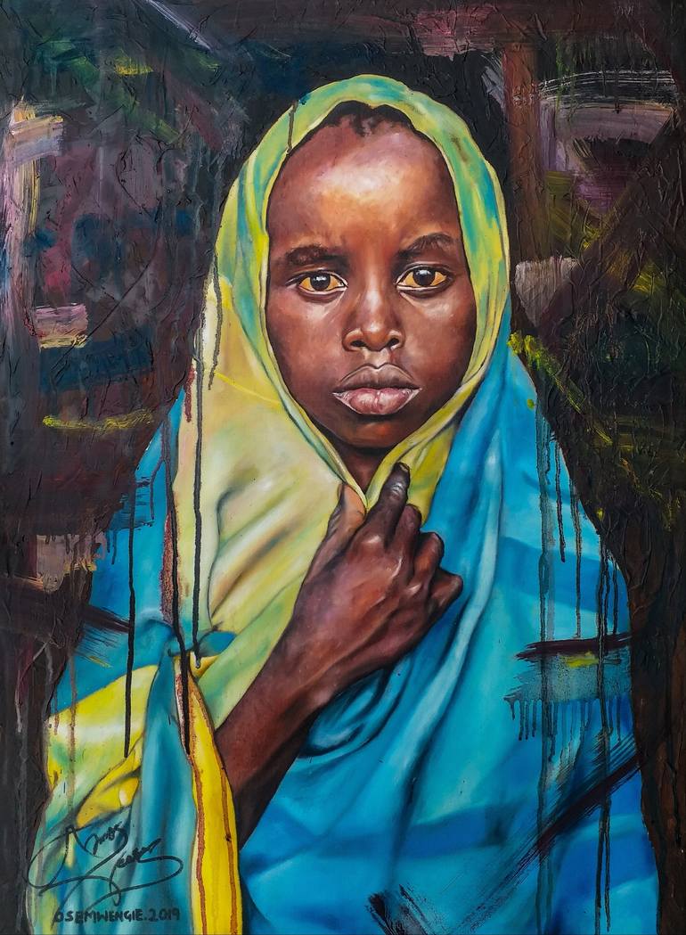 With a very traditional, multilayered approach to painting, Amos Osemwengie creates pieces which embodies the essence of being human while fulfilling his undying love for his practice. Using oils as his primary medium, The self-taught artist who hails from Nigeria, captures his melanated figures with intricate textures that exudes rawness, life and vitality. His figures are painted to feel as though they are breathing and his flowers/leaves are painted to feel as though they are dancing. The artist draws great inspiration from every aspects of nature, the resilience of the human spirit, the things that have stood the test of time, and also what connects us intricately between various facets of life. Amos has exhibited in Lagos and has gained a growing list of private collectors from United States, London, Taiwan and Hong kong.