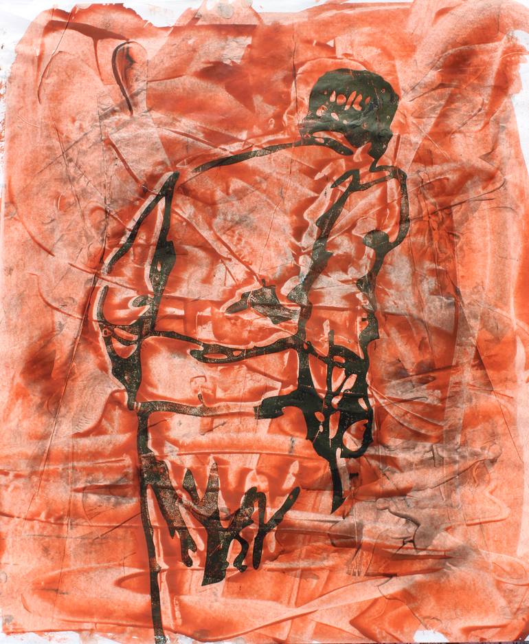 two color art enamel scribbles drawings/painting on acid free paper painted with palette knife signature and certificate on back