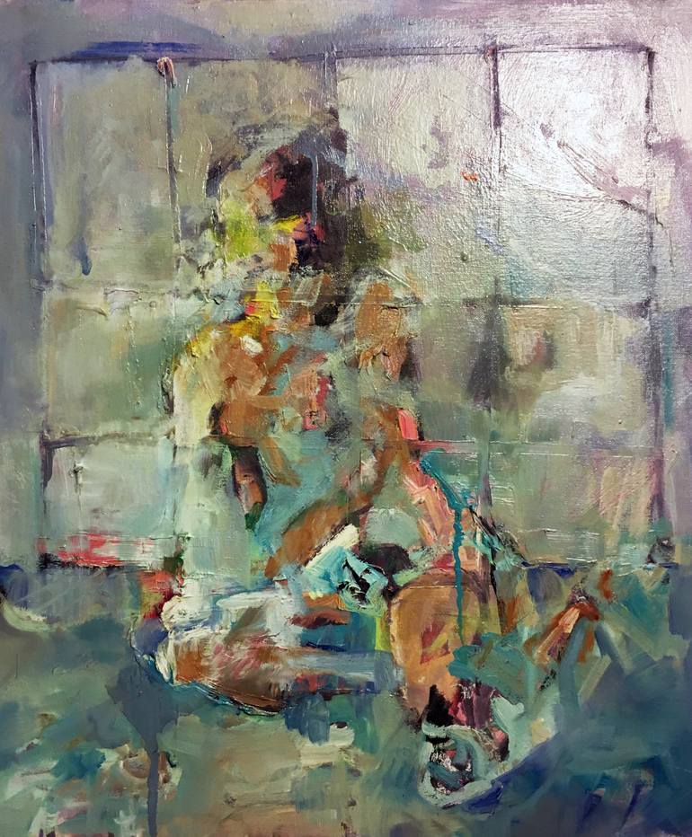 Bethany Petryszak is a figurative artist creating gaze-based tension. Pornographic figures are abstracted, layered and put into motion. As they look back at the viewer, the flattened symbols of lust become powerful. Bodies are reclaimed. Awkward poses become powerful stances. The object stares back. The viewer is objectified. Prior to this series, Bethany was painting aerial views of Chicago and breathing life back into dead houseplants.