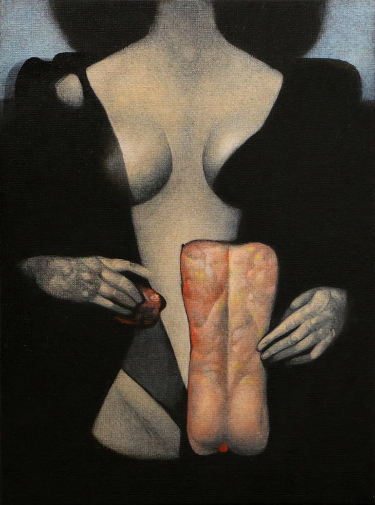 My paintings are kind of notes of special moments in which I was able to be sufficiently open to a deeper understanding of myself and the people close to me, our actions and feelings. It's an attempt of an inner man portraiture. Therefore, it seems to me, occurred a need for simplified figuration, deformation, omitting parts of the face and body, as opposed to how we humans are accustomed to perceive each other in our physical environment. Is it actually possible to express abstractness of emotions and ideas about man by painting the human figure? In what way and how much these ideas are, concerning growing up in the community, education and cultural heritage, visually formed in our minds? As god is depicted in human form, because that is what our minds can comprehend and feel familiar to, I spontaneously choose to describe the spirit as something equally human too, but also strive to get out of these boxes. The picture that balances on the imaginary boundary of physical and spiritual, for me, is a form of connection and communication with other people.