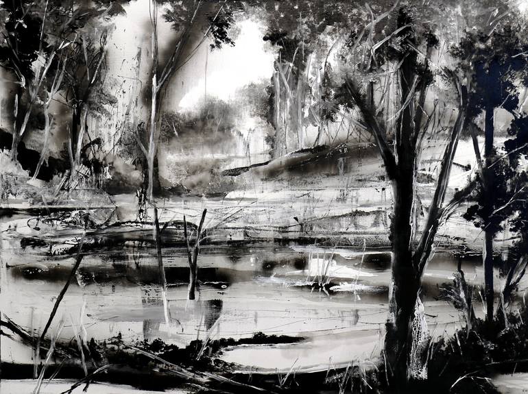 Born in 1977 The term Locus Neminis was used in ancient Rome to refer to the silva, the wild forest areas, considered places belonging to no one. In a sense, that is how I think of the places suggested by my paintings. Each one is an interstitial zone that bears the traces of my passage and constitutes a place of transition where the viewers and I exchange looks. We stand outside the work together, looking in. I use black and white to create a balance, assert an abstraction. By putting reality at a distance, haunted or dreamlike echoes can be heard.