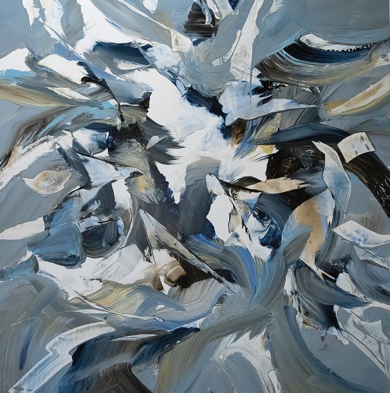 This is in my opinion, one of my best works. I have recently been using a limited color palette to good effect. I like sometimes to leave some of the surface white. I combine that with areas of scraped off paint. I use large brushes mostly, and when I get into the flow as I did with this painting...
