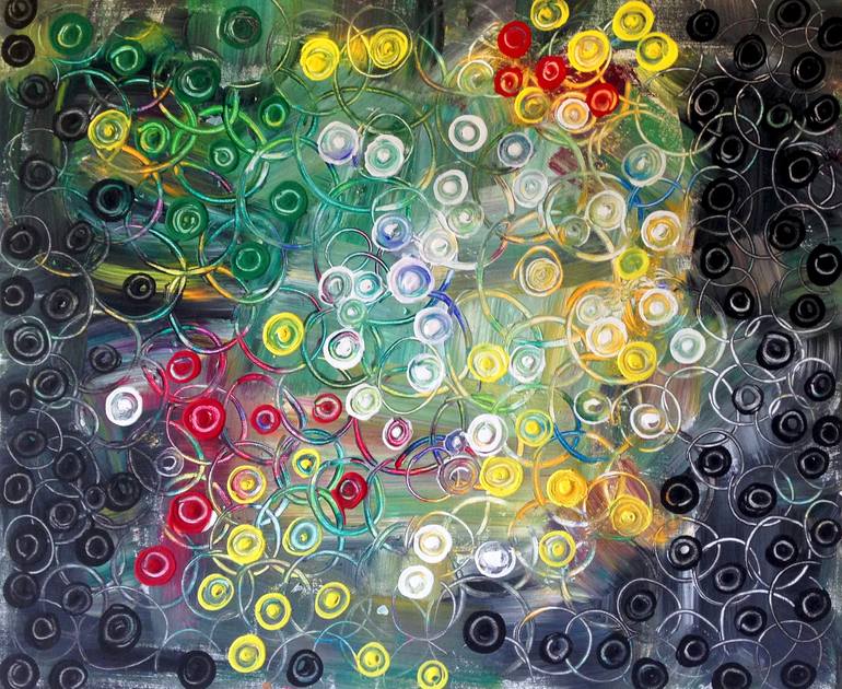 Abstract artwork on Canvas. Painting design of colourful circles will be looking original in any interiors. Ready to hang, no framing required. High quality paints, sides also painted. My artwork will be shipped in a cardboard box,covered with a medium density fibreboard on both sides against punc...