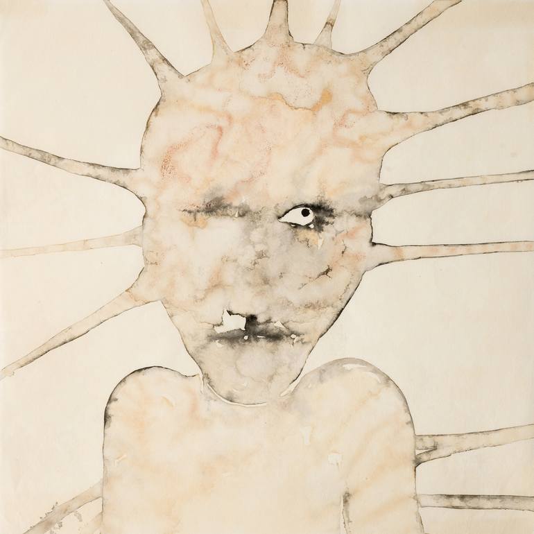 The name of this series is "untouchable". You see these paintings from the pain of experience. I draw these people, there is no skin. No skin is the most sensitive person, gently touch will produce huge pain. In some paintings is the combination of human and animal. These people have horns of deer....