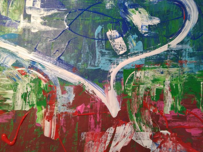 Upon America's Division Abstract, Original is highly symbolic as I did this with a vision as I woke this morning. Blue stands yes, for Democrats, Red, Republican. Green that can be scene all thru the painting is the World and the people of the World- all that is so very significant to our very exi...