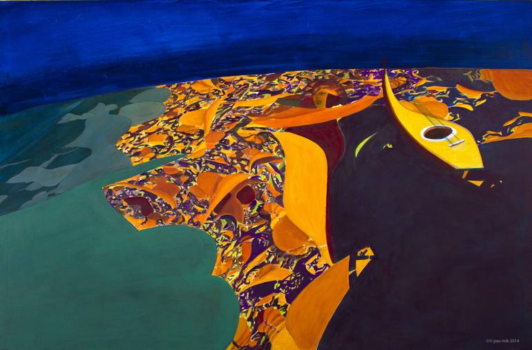 These paintings are different. They don`t try to be another interpretation of the vissible reality. Even if they are geometric realism. They are neither a sensation or a feeling to comunicate abstractally. They are not landscapes or figures that I had seen during a vistir or walking. These paintings are born from the philosophic and algebraic meditation about Caos theory. I don`t paint what I see or what I feel anymore. I represent, as literally as I can, the Essence this formal Universe is made of. And I do include the Time, because the rithm they are built of, because the distance between some objects and the closer ones. Because de degration of the geometries. And the thought that makes me smile a lot is that if space and time are an indivisible couple, these complex planes I had been working all these years promise nearly ethernal times.