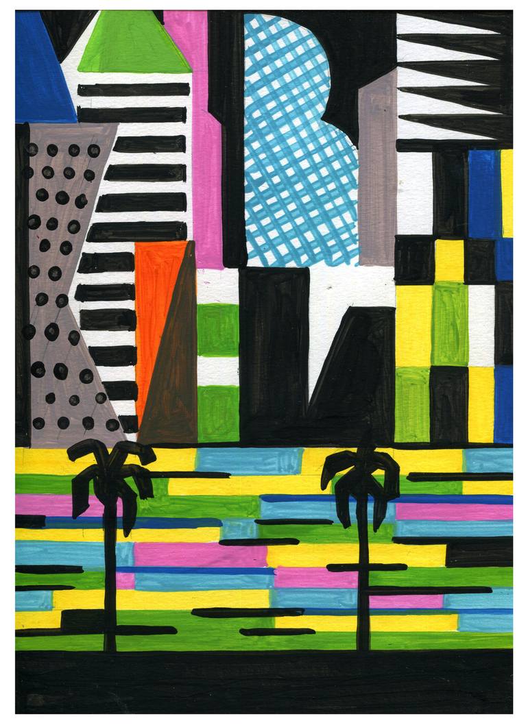 Las Vegas, huge amusement park for big kids, city-mirage in the middle of the desert. I spent two days in the « city of the game » but I did not play, I watched a lot. I played when back to the studio with the shapes, the lights, the architecture, and signage to create this series of acrylics on pap...