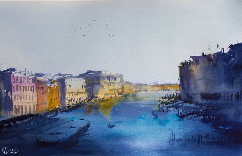 This artwork participated in Indonesia International Watercolor Online Competition and Exhibition in 2021. Sun and shadow view of Grand Canal from Rialto bridge. Almost abstract urban landscape of Venice, one of my favorite city in the world. This painting will be great in classic, minimalistic in...