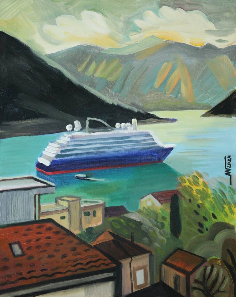 Сanvas on cardboard. Montenegro is a country with stunningly beautiful nature. I am fortunate to live in a picturesque corner of this country by the bay. Every day in summer and autumn, liners come into the bay, bringing tourists to admire Kotor. One can endlessly enjoy the view of the bay. I try t...