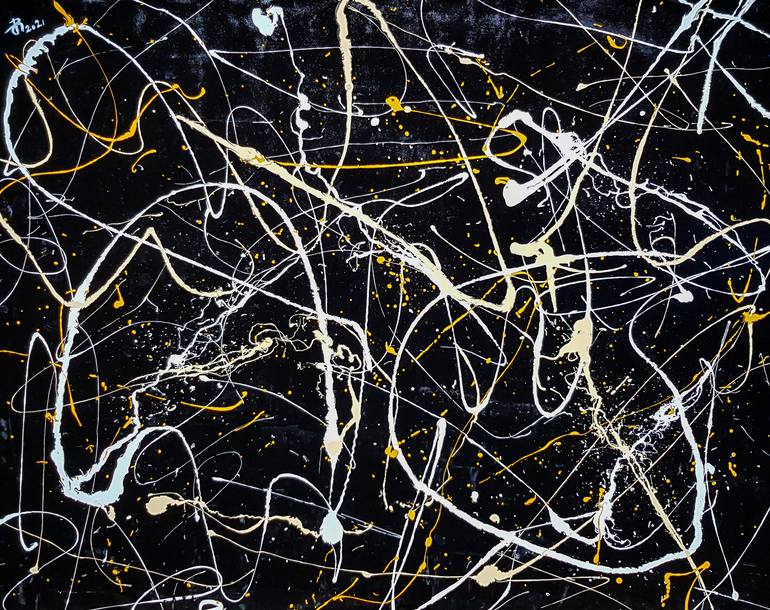 LARGE FORMAT! Modern painting in Jackson Pollock style. Enamel, Oil on high-quality gallery Unstretched Canvas. After Stretched on the wood frame Size: (H)96x(W)120 cm. / (H)38x(W)47 inches. Total dimensions: (H)106x(W)130 cm. / (H)42x(W)51 inches. 5 centimeters of extra canvas around the image a...