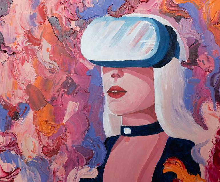 Our world is changing rapidly. VR, AR and other things which were looks like fantastic before now is a part of our reality. Future promising us a life in Metaverse and now we faced many questions. Will be this good for human being or the AI will make a damage for us? The painting comes signed and ...