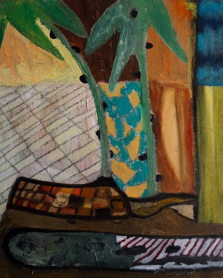 Semi abstract landscape painting made with acrylic and charcoal on canvas.