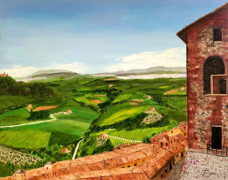 This is a painting of the first photo that I took on the day that we finally arrived for our stay in Montepulciano. Our trip had been rescheduled 3 times due to covid restrictions. This was our first view of the Val d'Orcia and the moment that I saw it, I knew that it would also be my first painting...