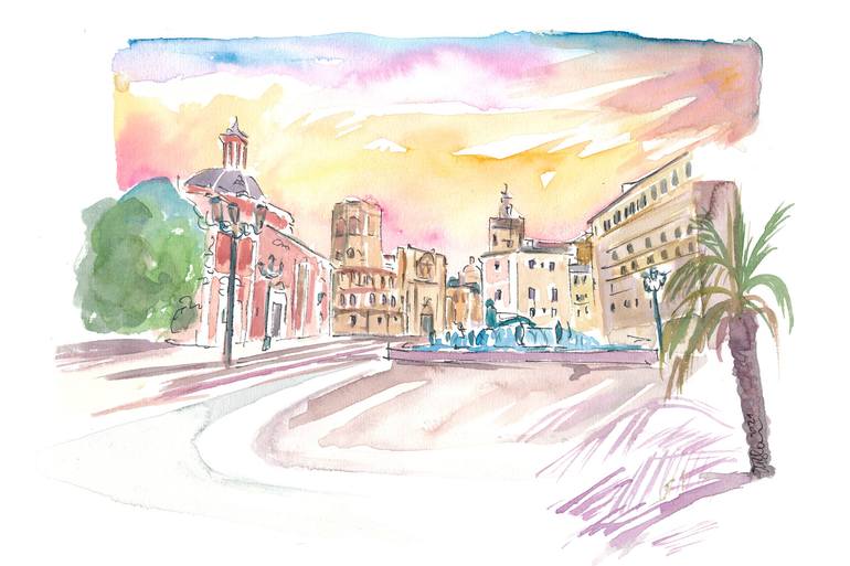 Valencia Placa De Mare De Deu Street Scene - Watercolor on Paper