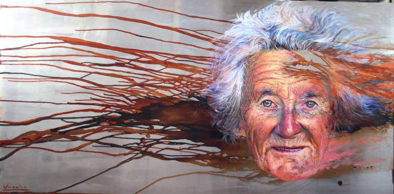village woman, coexisting life in the city I painted this work, after passing through a town in Spain, I was impressed by its people. To give it more strength, use the aluminum bracket.
