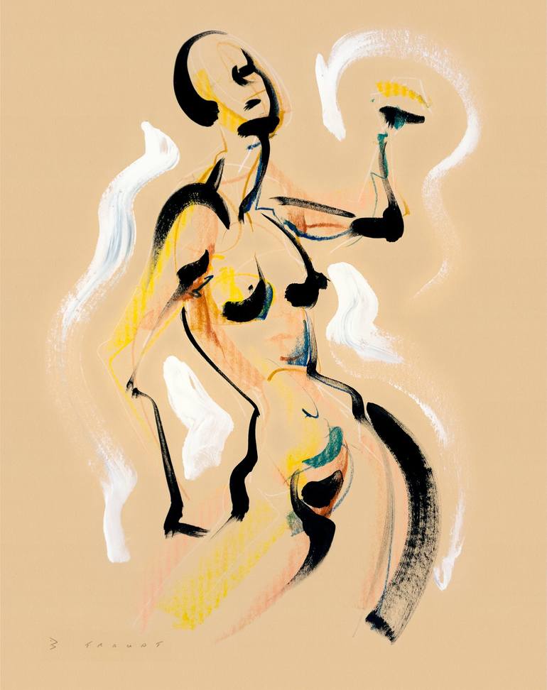 Gestural painting is a most rewarding challenge. The painted line cannot be changed once it has been made. The quality of the brush strokes are critical to the overall expression of the image. Each model has their own lines and rhythm within their body. I love finding the lines that best match t...