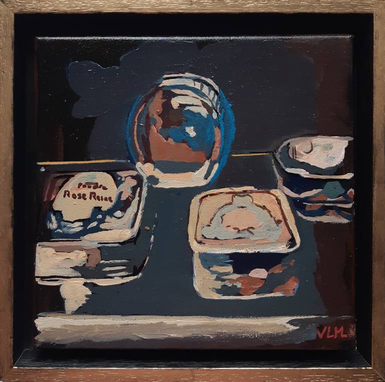 Vanité N°3: série Vanity n°3 Framed with a black wooden frame with golden edge total height : 24/24/3.5 cm/ 9.45*9.45/1.18 inches This represents a display of old boxes of make-up delivered with invoice and certificate of authenticity