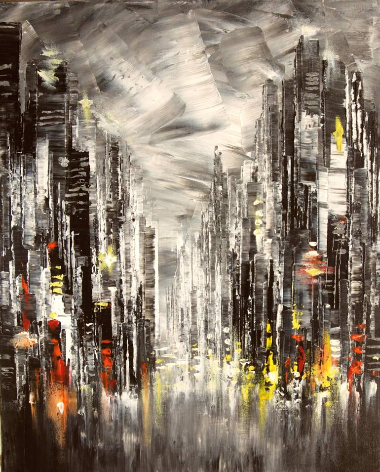 Original Palette knife Cityscape Painting. Sides of the canvas are painted black and can hung with or without frame. Protective coat of satin varnish applied. The painting is signed on the front and the back and delivered directly from my studio. Certificate of authenticity is provided.