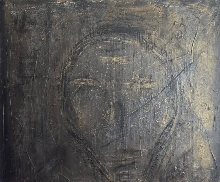 A shadow, a fleeting presence? The surface feels as though it has been shaped over centuries – fragmented, layered, marked by time and space. Fine lines carve through the textures, carrying an energy that feels both meditative and elusive. Is this a whisper from the past or a hidden message from ano...