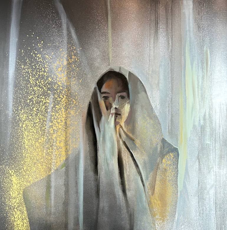 Valentina is my most recent muse and she has inspired me to paint a mysterious series of portraits of her, usually as a dancer, but this one is more personal. There is a sense of a religious overtone and possible epiphany, as yet hidden from the viewer. I have found that stencilled spray paint is a ...