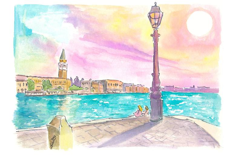 Venezia Punta della Dogana lonely Morning with St Marks View - watercolor on paper